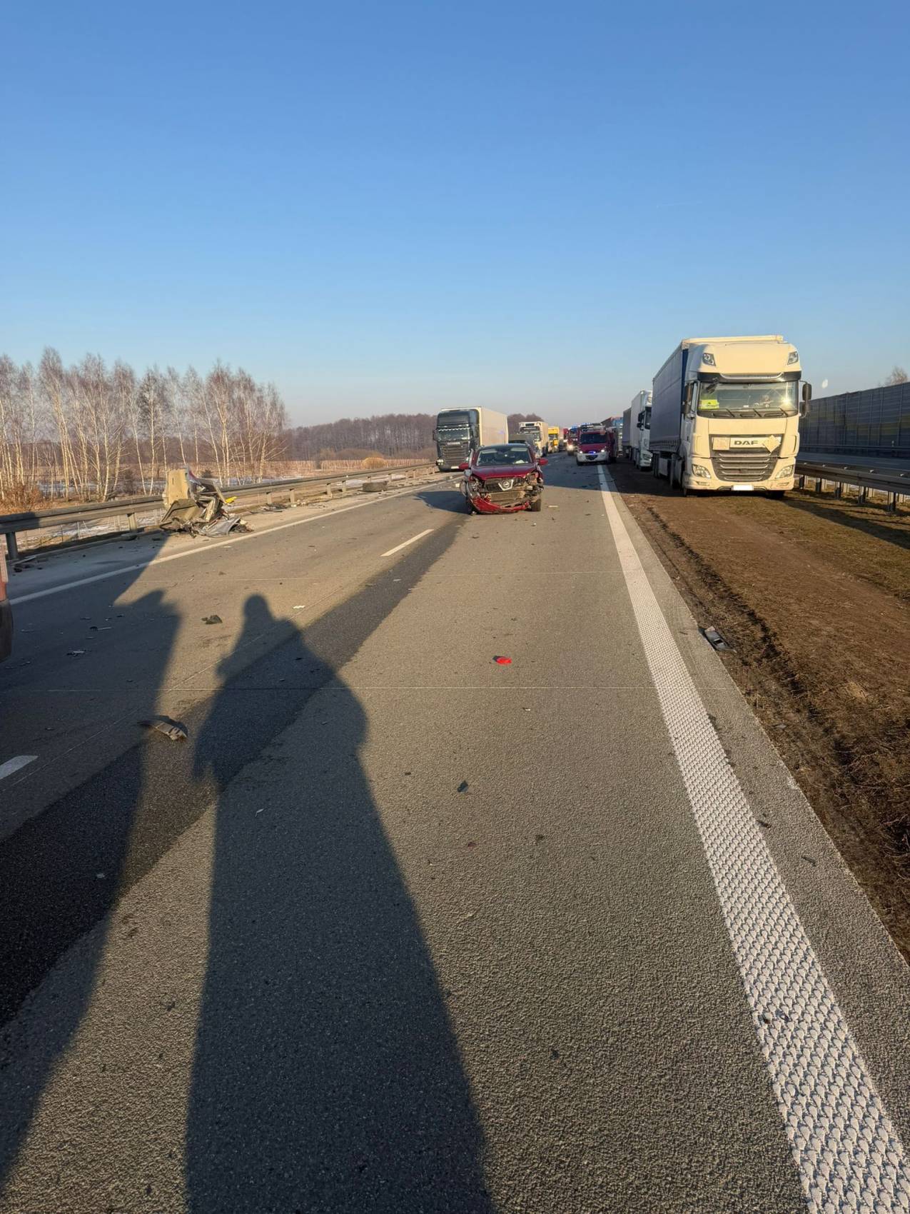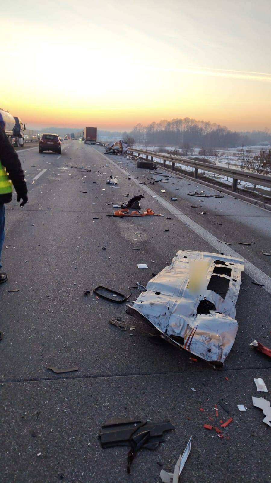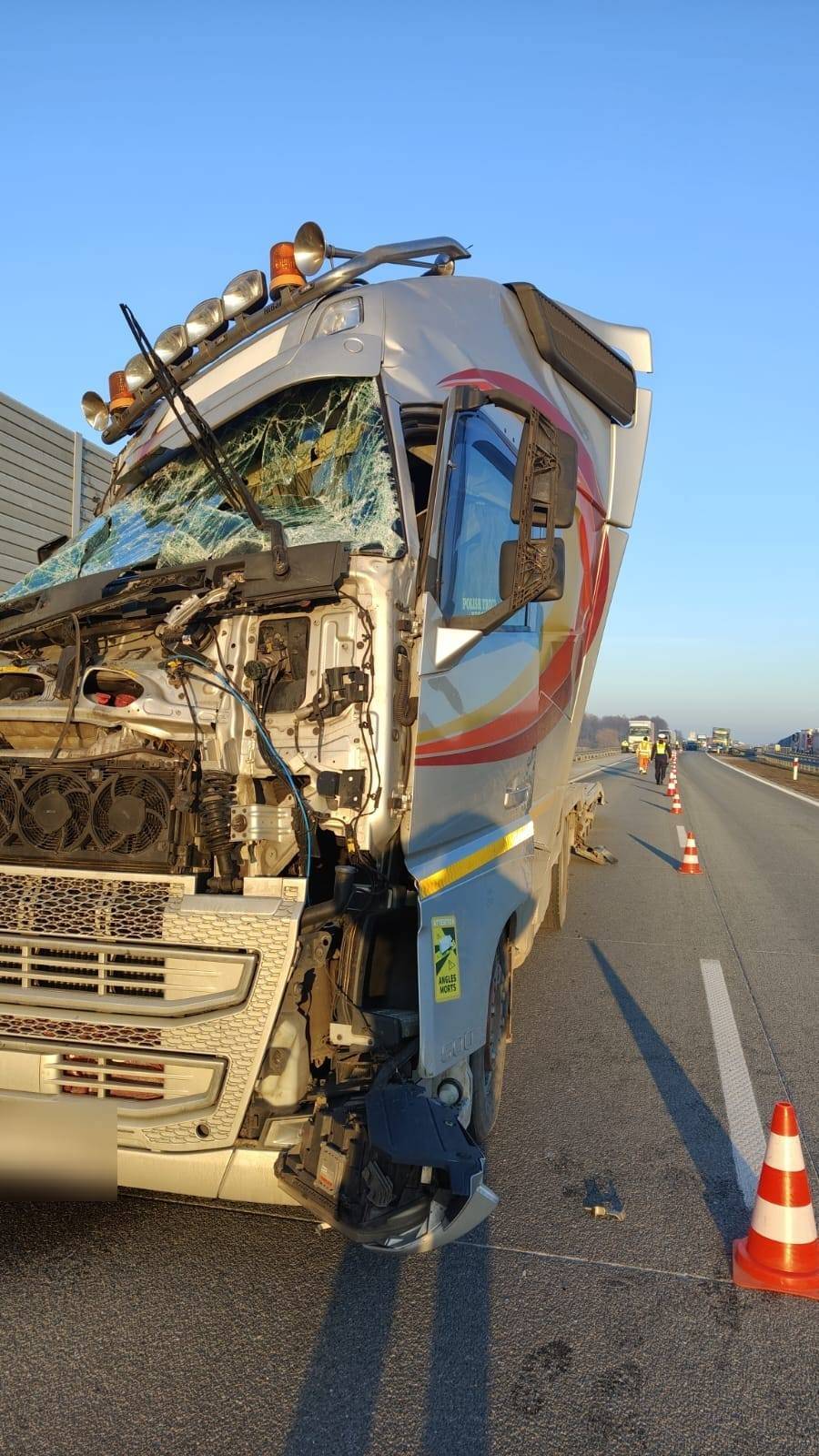 Jak wynika ze wstępnych ustaleń, 39-letni kierujący pojazdem ciężarowym marki Volvo z naczepą najechał na tył unieruchomionego na poboczu pojazdu ciężarowego marki Scania z naczepą. Scanią kierował 23-letni mieszkaniec powiatu sochaczewskiego.