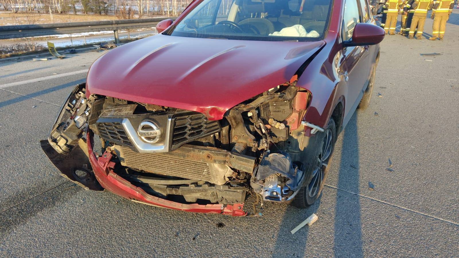 - W wyniku zderzenia elementy pojazdu Volvo zostały rozrzucone na pasie ruchu. Na znajdujące się na jezdni koło zapasowe najechał następnie samochód ciężarowy marki Renault z naczepą, kierowany przez 35-letniego mieszkańca Suwałk, a następnie samochód osobowy marki Nissan, którym podróżowała 47-letnia mieszkanka powiatu sieradzkiego - relacjonują policjanci z KPP Pabinice.