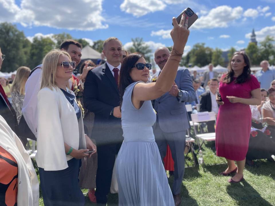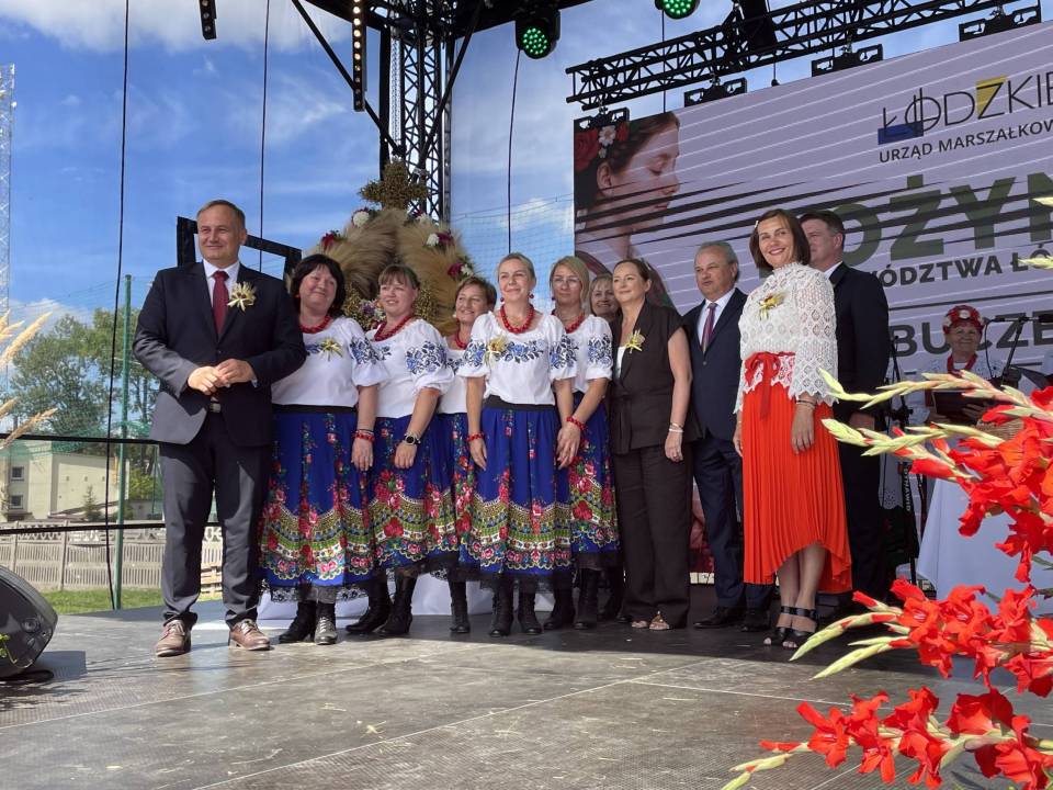 Zapewniła również o wsparciu dla obszarów wiejskich – w tym roku sołectwa z woj. łódzkiego otrzymały rekordowe 40 mln zł m.in. na świetlice i miejsca integracji. Część obrzędową rozpoczął Zespół Śpiewaczy „Sędziejowianki", a następnie starostowie dożynek – Agnieszka Węglewska i Paweł Michalak – przekazali na ręce marszałek bochen chleba upieczony z tegorocznych zbóż.