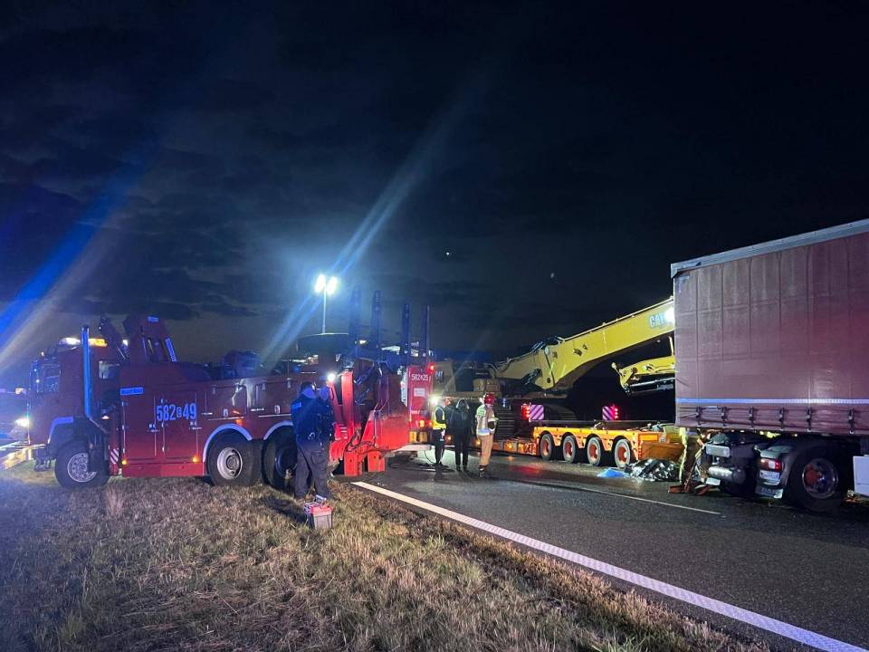 W okolicach miejscowości Florianki zderzyły się dwie ciężarówki – w tym zestaw oversize przewożący maszynę budowlaną – oraz samochód osobowy pełniący funkcję pilota transportu ponadnormatywnego.W wyniku wypadku śmierć na miejscu poniósł kierowca TIR-a. Jak przekazuje bryg. Jędrzej Pawlak, oficer prasowy KW PSP w Łodzi mężczyzna doznał tak poważnych obrażeń, że służby ratownicze – po przybyciu na miejsce – odstąpiły od próby ewakuacji z pojazdu.