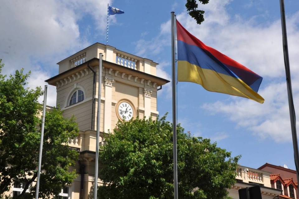 Na maszcie przy Ratuszu Miejskim w Łowiczu powiewała flaga Cieszyna. Podniesiona została ona na podstawie porozumienia, jakie miasto zawarło z Cieszynem, upamiętniając w ten sposób 10 Pułk Piechoty, który stacjonował przed wojną w obu miastach.