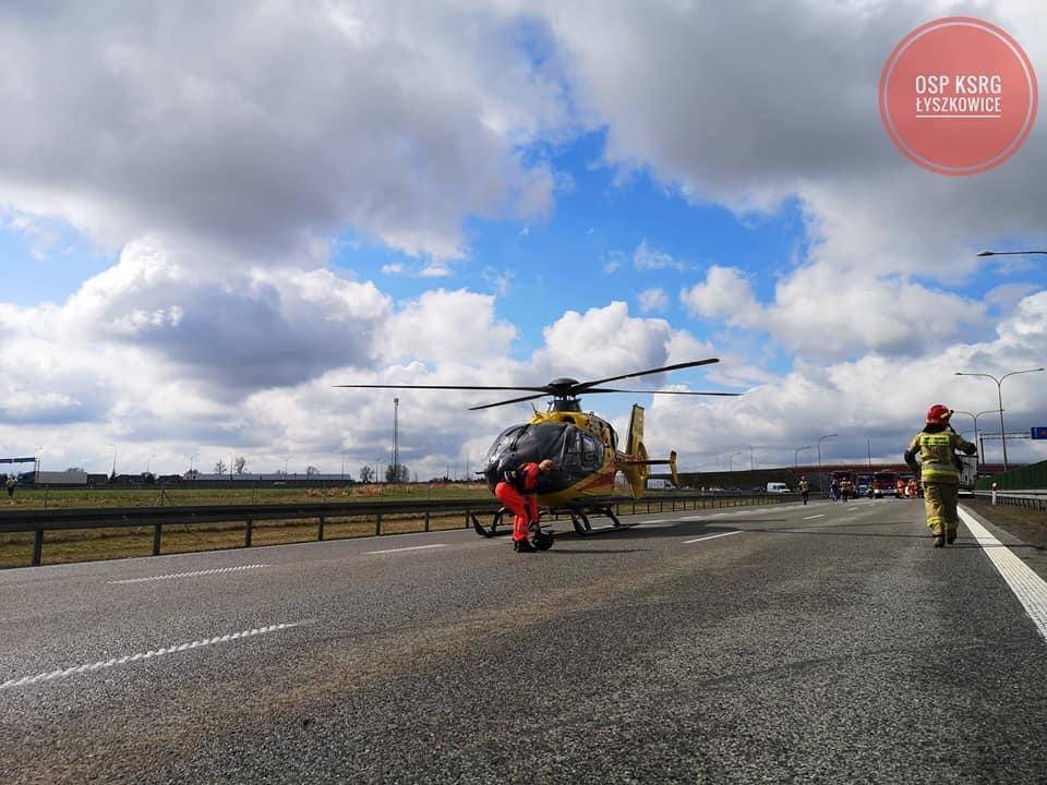 Na miejscu pracowało kilka zastępów straży pożarnej, policja oraz - ze względu na brak wolnego Zespołu Ratownictwa Medycznego - załoga śmigłowica LPR.