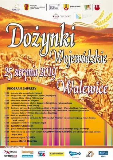 Marszałek Województwa Łódzkiego Grzegorz Schreiber i Starosta Łowicki Marcin Kosiorek zapraszają do udziału w Dożynkach Wojewódzkich, które odbędą się, 25 sierpnia 2019 r. w Walewicach. Program spotkania obfitował będzie w wiele, ciekawych atrakcji.
