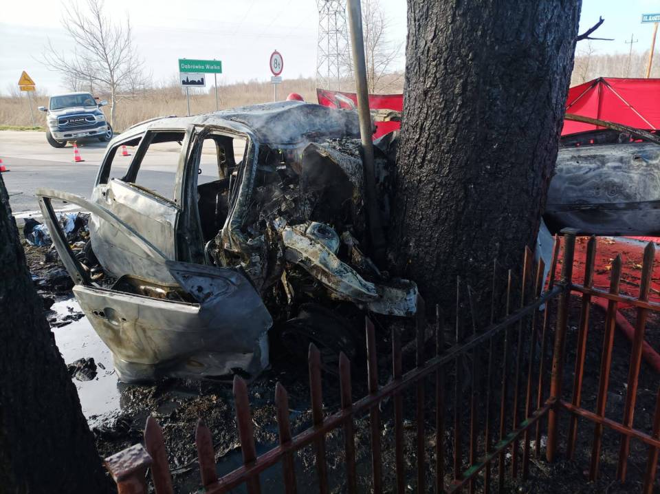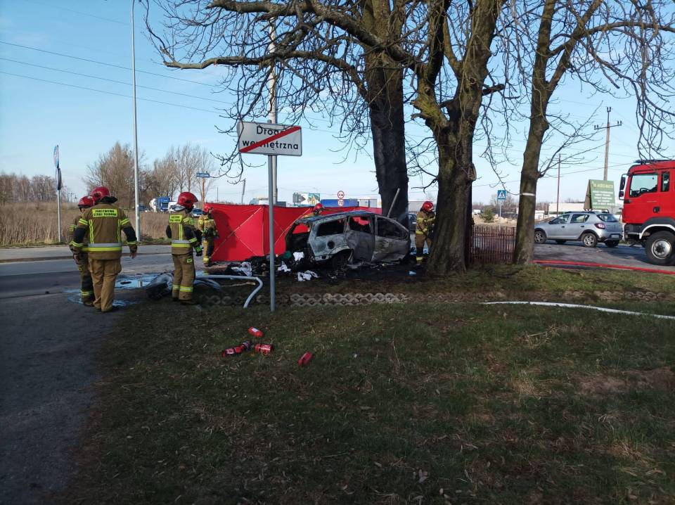 Do zdarzenia doszło dzisiaj (29 marca) około godziny 16:20. Jak przekazał mediom mł. bryg. Michał Mirowski, samochód osobowy wypadł z drogi i uderzył w drzewo. Następnie pojazd stanął w płomieniach. Na miejsce zadysponowano dwa zastępy JRG Zgierz, Zespół Ratownictwa Medycznego oraz policję.