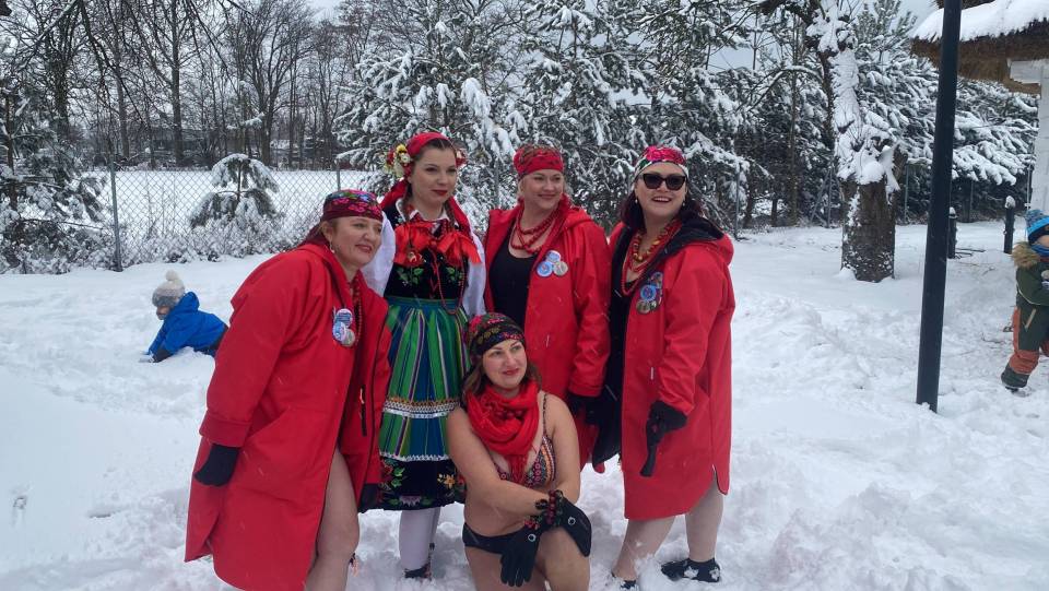 Baseny z lodowatą wodą ustawione wśród drewnianych chałup i zabytkowych zabudowań szybko stały się centrum wydarzeń. Uczestnicy, ubrani w kolorowe czapki, stroje kąpielowe i szerokie uśmiechy, z odwagą zanurzali się w zimnej wodzie, a każdemu wejściu towarzyszyły okrzyki dopingu i salwy śmiechu. Zdjęcia z wydarzenia nie pozostawiają wątpliwości - zabawa była przednia, a energia uczestników zaraźliwa.