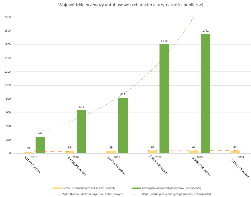 Już we wrześniu 2019 r., od kiedy zaczął obowiązywać ten rządowy program, uruchomiliśmy rekordową w skali kraju liczbę linii komunikacyjnych (29). Dziś oferta wojewódzkich przewozów autobusowych to już 42 linie i średnio 513 kursów dziennie. Najdłuższa ma aż 94 km przebiegu. Linie obejmują 128 gmin, a nasze przewozy docierają do 321 miejscowości, które dotychczas nie były skomunikowane wojewódzkim przewozami.