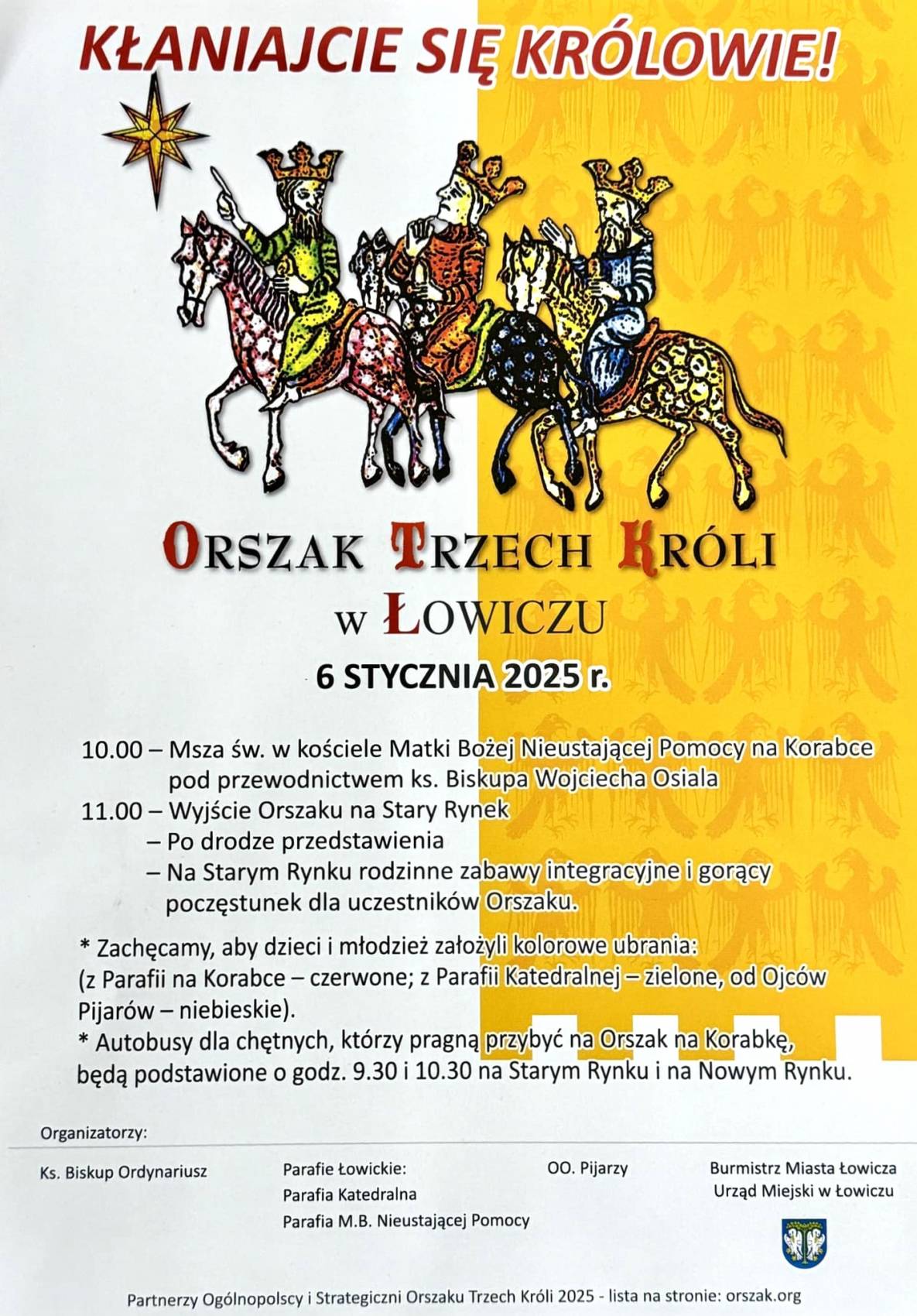 Jak co roku, 6 stycznia 2025 r. ulicami Miasto Łowicz przejdzie Orszak Trzech Króli. W tym dniu przypadać bowiem będzie święto Objawienia Pańskiego.