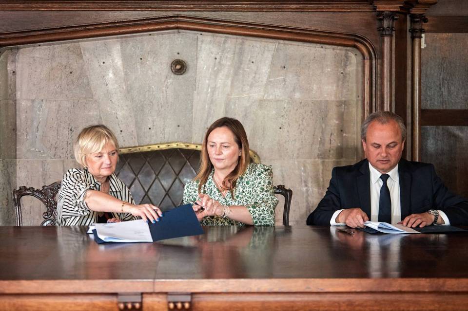 Umowy dotyczące wsparcia zostały zawarte w Sali Balowej Pałacu Herbsta w Łodzi. Z przedstawicielami uczelni podpisali je Joanna Skrzydlewska, marszałek województwa łódzkiego, oraz Artur Ostrowski, członek zarządu WŁ.