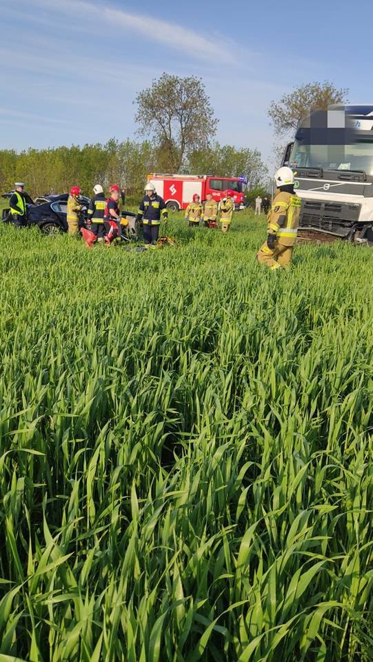 -  Ze wstępnych ustaleń policjantów pracujących na miejscu wynika, że kierujący bmw 53-letni mężczyzna, jadąc od strony Widawy w kierunku Pajęczna, wjeżdżając na DK 74 z drogi podporządkowanej, nie ustąpił pierwszeństwa przejazdu i doprowadził do zderzenia z samochodem ciężarowym volvo, który jechał od strony Wielunia w kierunku Bełchatowa. W wyniku zderzenia pojazdów, na skutek odniesionych obrażeń, śmierć na miejscu poniosła 63-letnia mieszkanka powiatu sieradzkiego - pasażerka bmw, a jego kierowca śmigłowcem LPR został przetransportowany do szpitala - informuje Iwona Kaszewska z KPP Bełchatów.