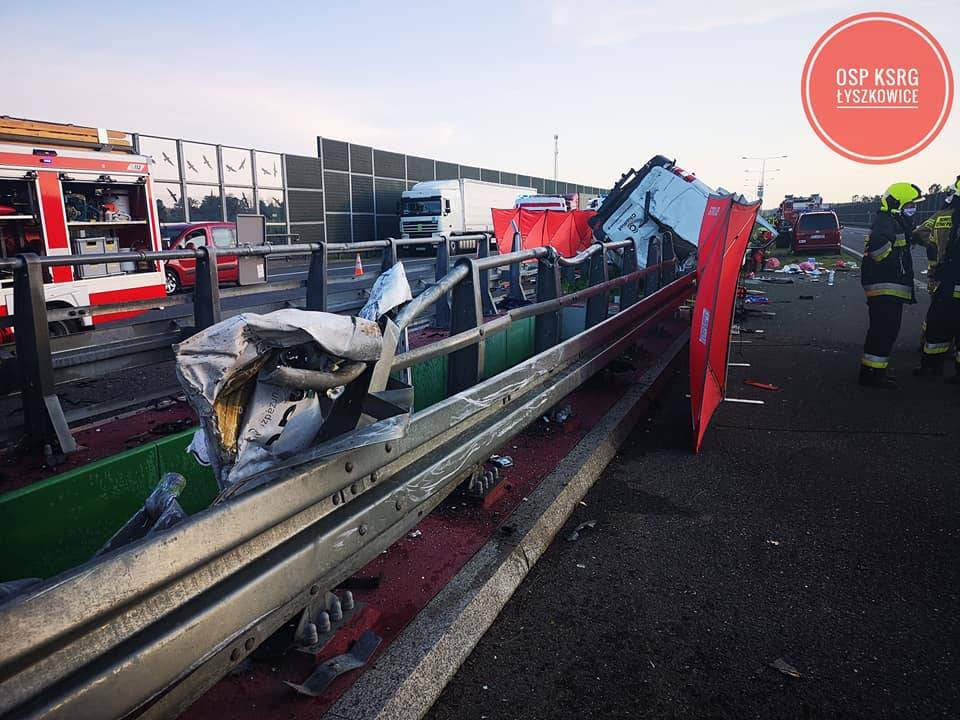 - Busem podróżowało 5 osób. W skutek uderzenia kierujący mercedesem uderzył w bariery rozdzielające pasy jezdni, gdzie dachował. W wyniku dachowania jedna osoba wypadła z pojazdu na drogę znajdującą się pod autostradą. Niestety pomimo podjętych działań ratowniczych jeden z pasażerów busa zmarł, pozostałe osoby zostały ranne. Kierujący byli trzeźwi - relacjonują policjanci z KPP w Łowiczu.