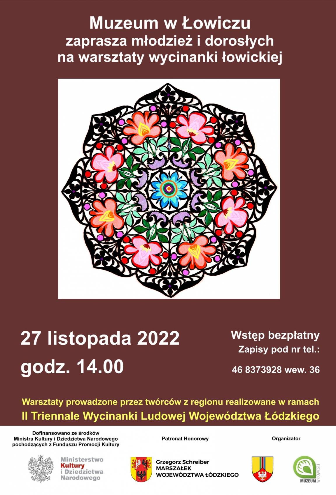 Warsztaty są realizowane w ramach II Triennale Wycinanki Ludowej Województwa Łódzkiego w 2022 r. dofinansowanego ze środków Ministra Kultury i Dziedzictwa Narodowego pochodzących z Funduszu Promocji Kultury.