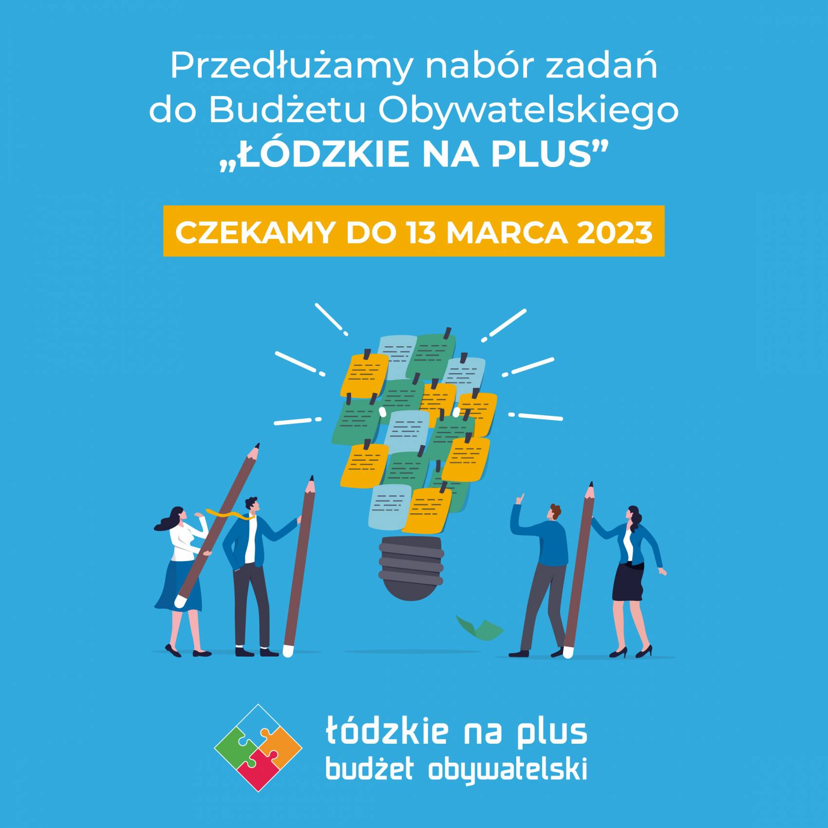Do poniedziałku, 13 marca zarząd województwa łódzkiego przedłużył termin składania projektów do Budżetu Obywatelskiego „Łódzkie na Plus". To dodatkowy czas na przesyłanie przez mieszkańców województwa swoich pomysłów, które uatrakcyjnią Łódzkie. Na ich realizację samorząd województwa przeznaczył aż 8 milionów złotych.