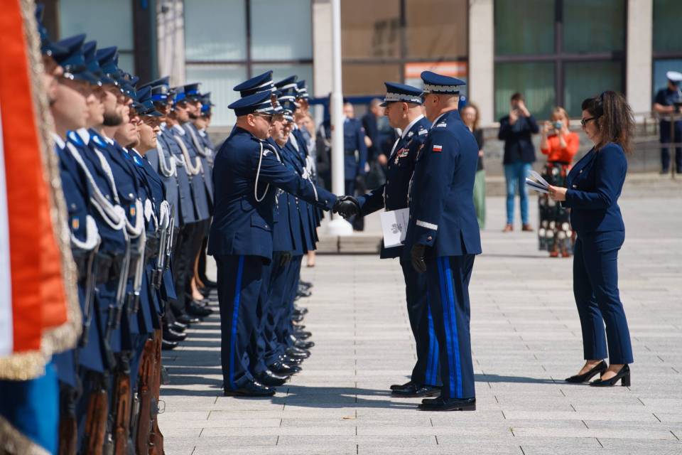 - To bardzo trudna i wymagająca służba, wielu powie, że niewdzięczna, choć bardzo ważna. Stoicie na straży naszego bezpieczeństwa, a jak wiemy, to najcenniejsza wartość dla każdego - mówiła do policjantów i policjantek, których w całym garnizonie służy już ponad 1.500.