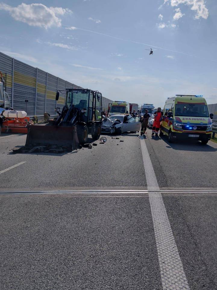 Wypadek na S8: Zderzenie hondy z koparko-ładowarką. Cztery osoby w szpitalu. "Ekspresówka" zablokowana [Foto]