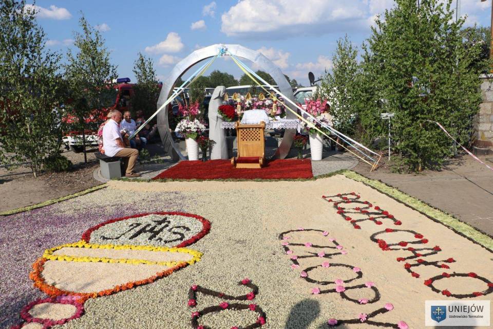 O godzinie 17⁰⁰ na placu kościelnym rozpoczęła się główna msza święta, sprawowana przy ołtarzu polowym przez Jego Ekscelencję Księdza Biskupa Radosława Orchowicza. W dzisiejszym nabożeństwie wzięli udział: Pan Marszałek – Grzegorz Schreiber; Posłowie na Sejm RP – Pan Piotr Polak i Pan Marek Matuszewski; Pani Starosta Powiatu Poddębickiego – Małgorzata Komajda; Burmistrz Uniejowa – Pan Józef Kaczmarek oraz jego zastępca – Pan Mirosław Madajski.