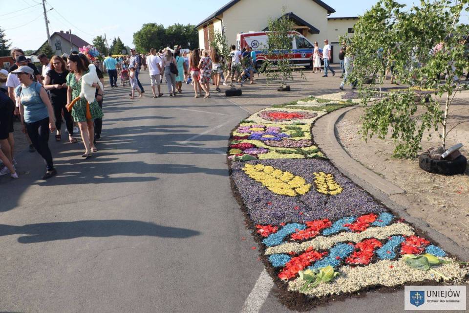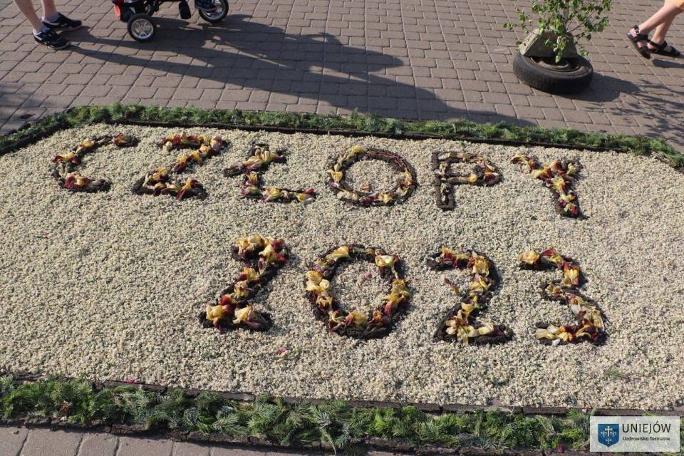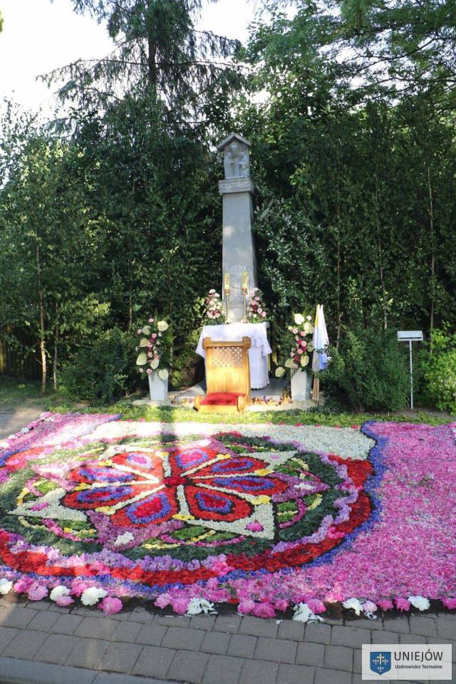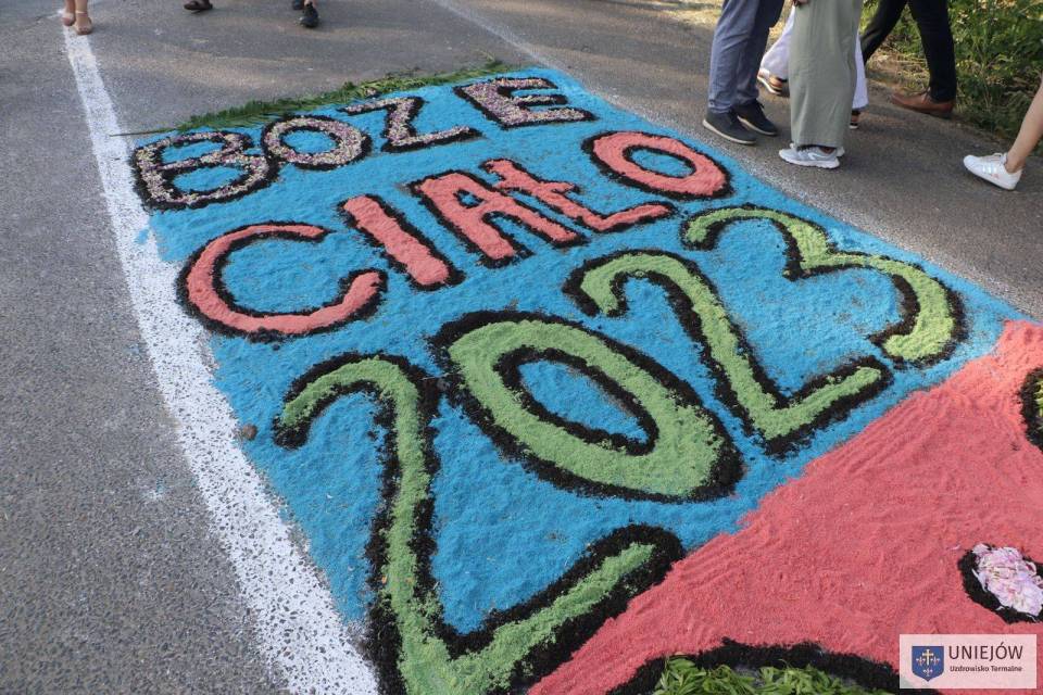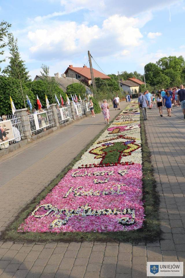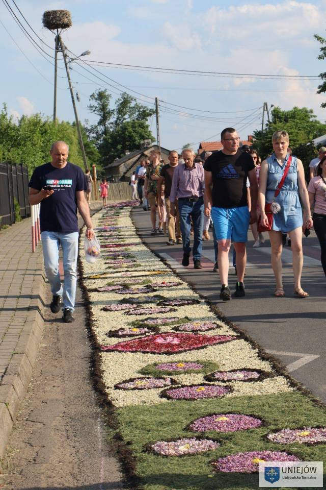 Uroczystość tradycyjnie zwieńczyła procesja, która przeszła trasą udekorowaną słynnymi na cały świat kwietnymi dywanami. Kapłanom niosącym monstrancję do czterech ołtarzy znajdujących się na szlaku, towarzyszyła pełna oprawa asysty honorowej, feretrony, poczty sztandarowe, straż OSP, dzieci sypiące kwiatki oraz Orkiestra Dęta OSP Spycimierz.