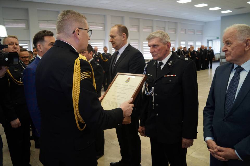Kolejnym punktem uroczystości było wręczenie decyzji o przyznaniu świadczenia ratowniczego dla druhów seniorów OSP. Było to możliwe dzięki wejściu w życie ustawy o OSP. W całym kraju przyznano już tysiące takich decyzji.